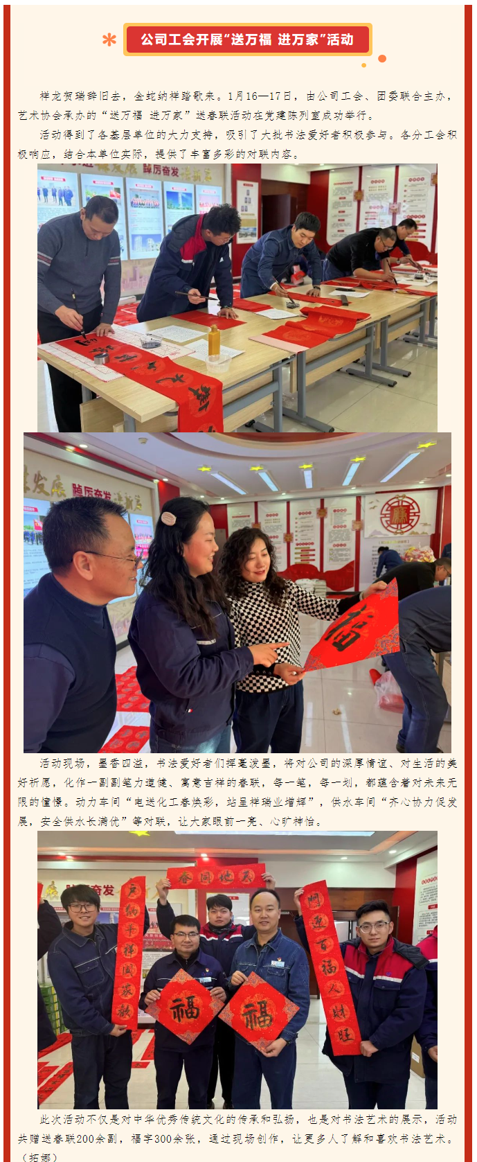 驚喜連連 溫暖不斷|公司工會開展“送萬福 進萬家”活動