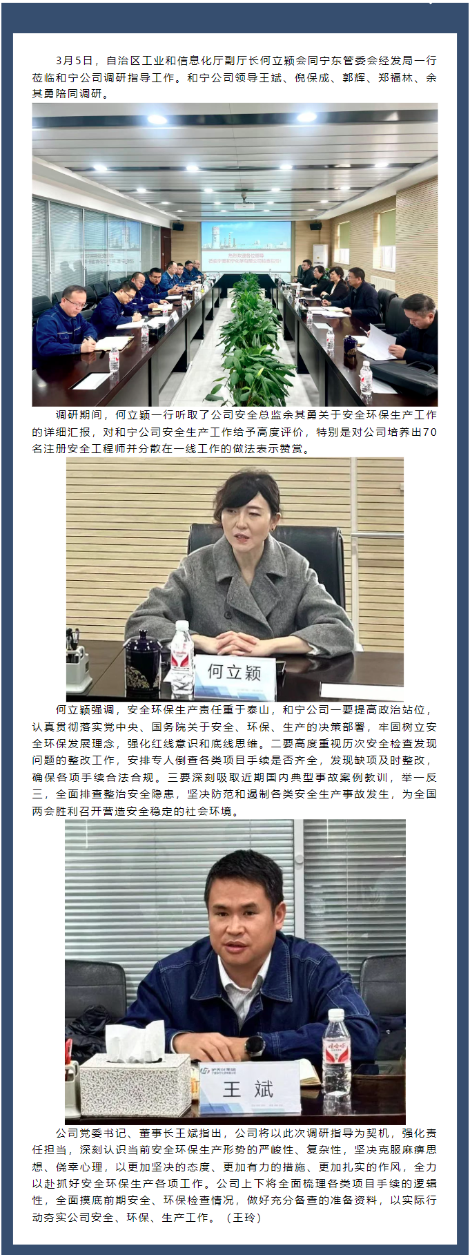 自治區工業和信息化廳副廳長何立穎一行蒞臨和寧公司調研指導工作