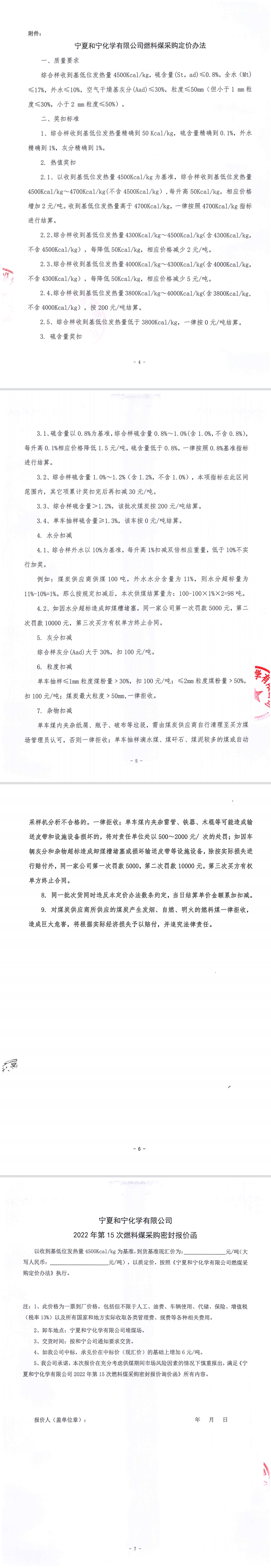 寧夏和寧化學有限公司2022年第15次燃料煤采購密封報價詢價函