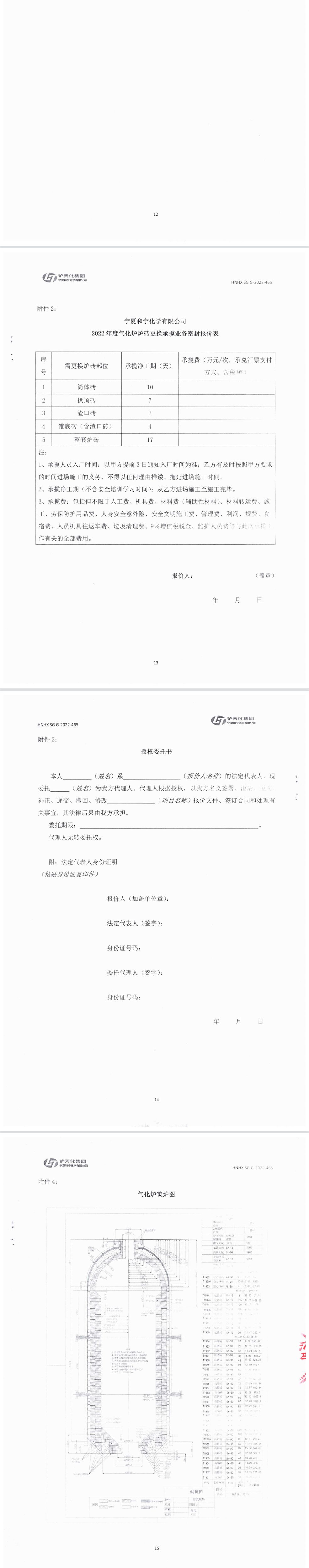 2023-2025年氣化爐爐磚更換工程承攬項(xiàng)目 - 詢價(jià)文件
