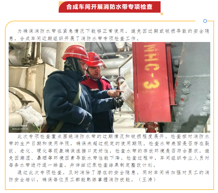 合成車間開展消防水帶專項檢查