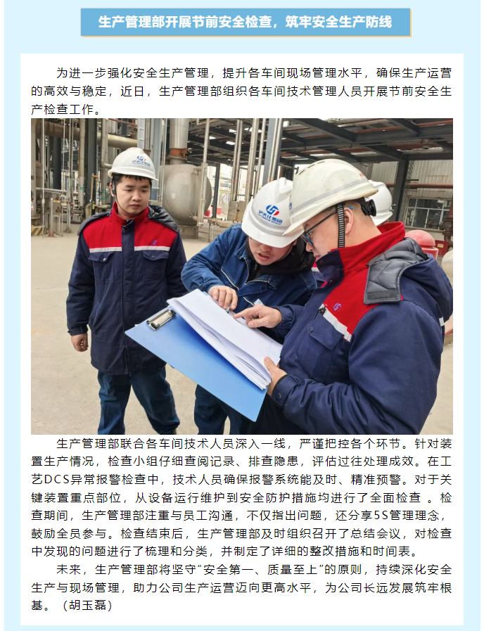 生產(chǎn)管理部開(kāi)展節(jié)前安全檢查,筑牢安全生產(chǎn)防線