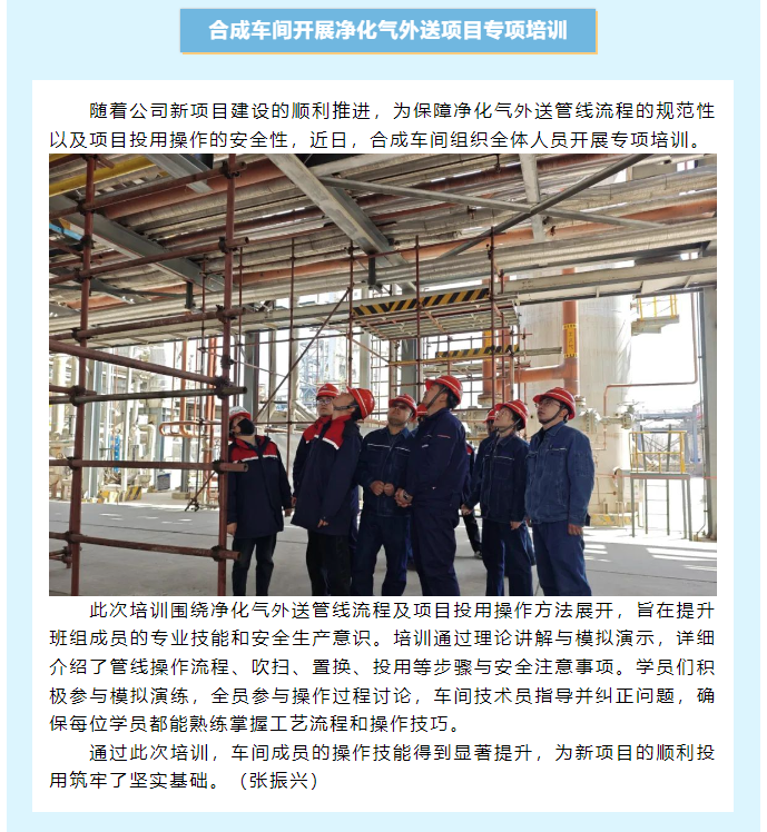 合成車間開展凈化氣外送項目專項培訓