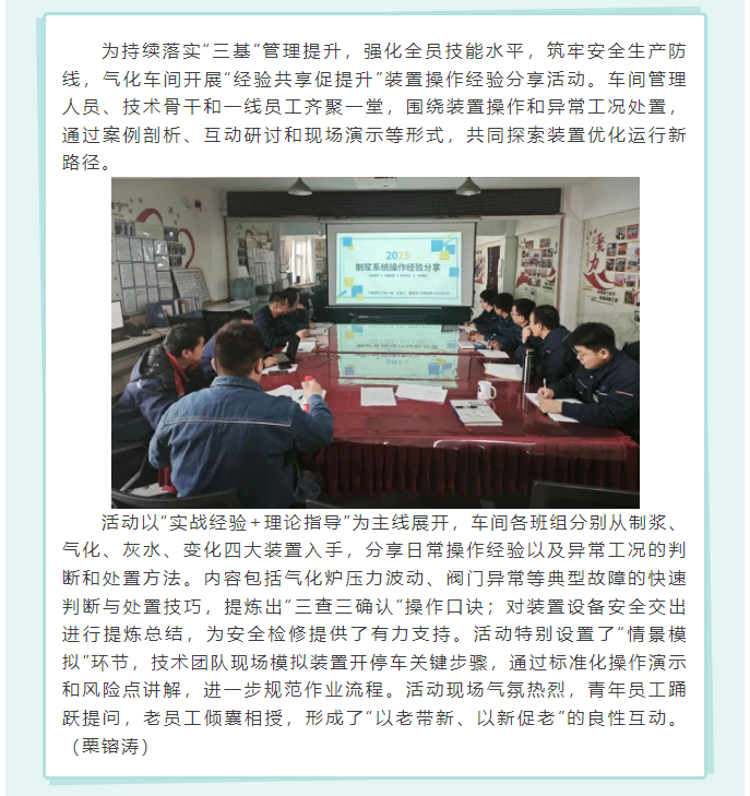 經驗共享促提升——氣化車間開展裝置操作經驗分享