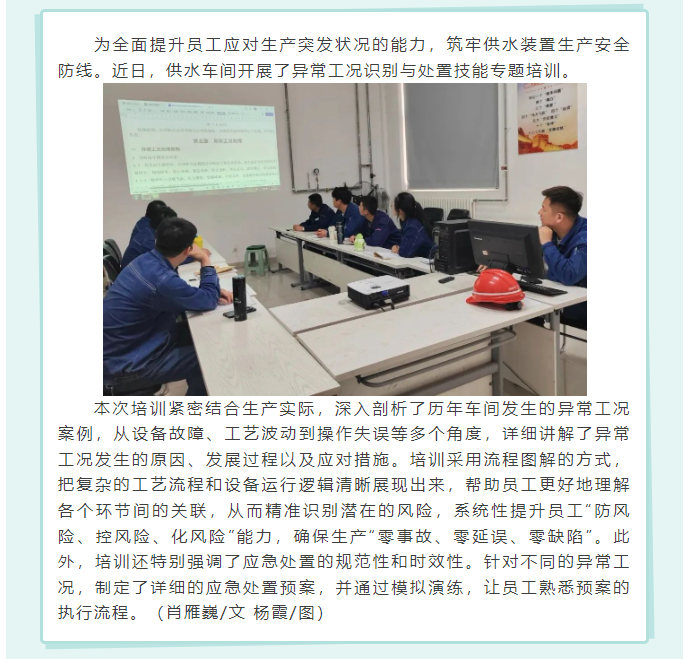 供水車間開展異常工況專題培訓