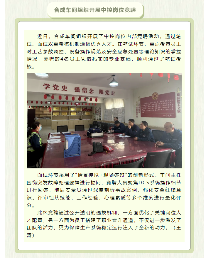合成車間組織開展中控崗位競聘