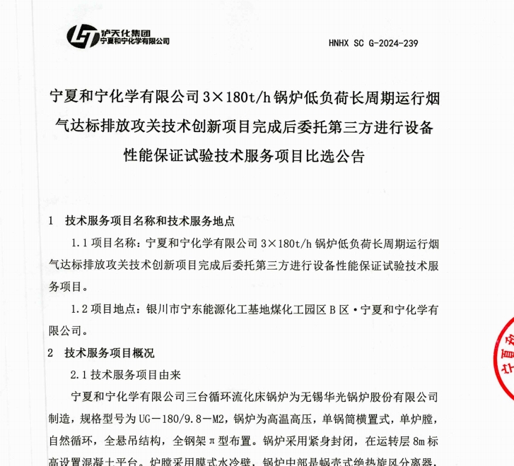 寧夏和寧化學有限公司3x180t/h鍋爐低負荷長周期運行煙氣達標排放攻關技術創新項目完成后委托第三方進行設備性能保證試驗技術服務項目比選公告.pdf