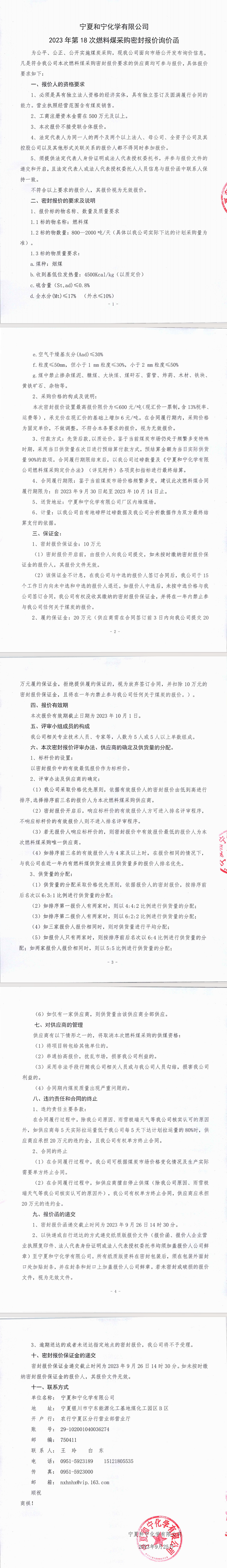 寧夏和寧化學(xué)有限公司2023年第18次燃料煤采購密封報(bào)價(jià)詢價(jià)函.pdf