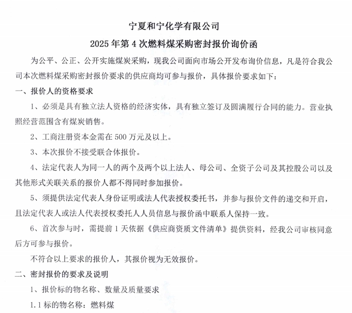 寧夏和寧化學(xué)有限公司2025年第4次燃料煤采購(gòu)密封報(bào)價(jià)詢價(jià)函.pdf [全文]