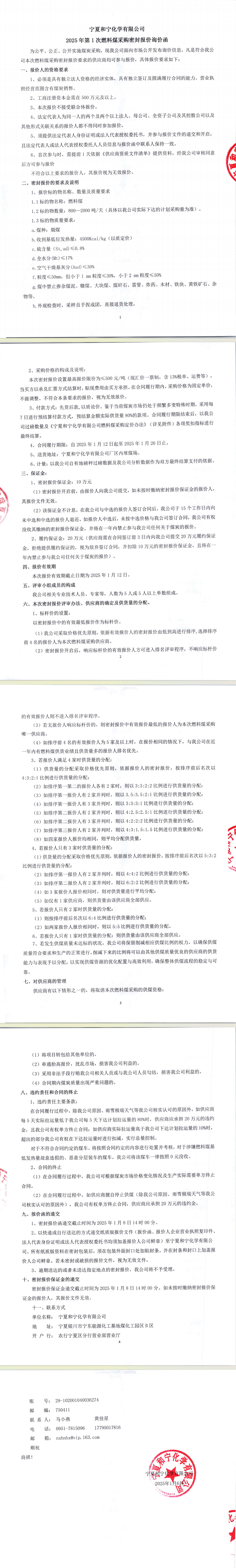 寧夏和寧化學有限公司2025年第1次燃料煤采購密封報價詢價函 [全文]