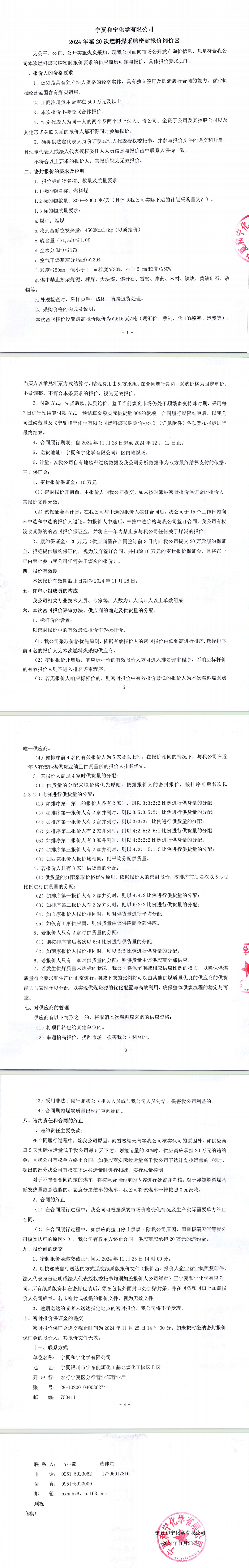 寧夏和寧化學有限公司2024年第20次燃料煤采購密封報價詢價函(1)