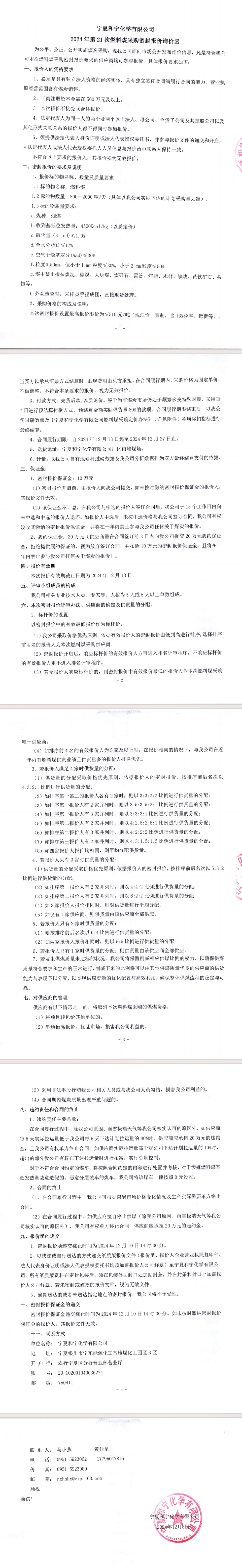 寧夏和寧化學有限公司2024年第21次燃料煤采購密封報價詢價函(1)