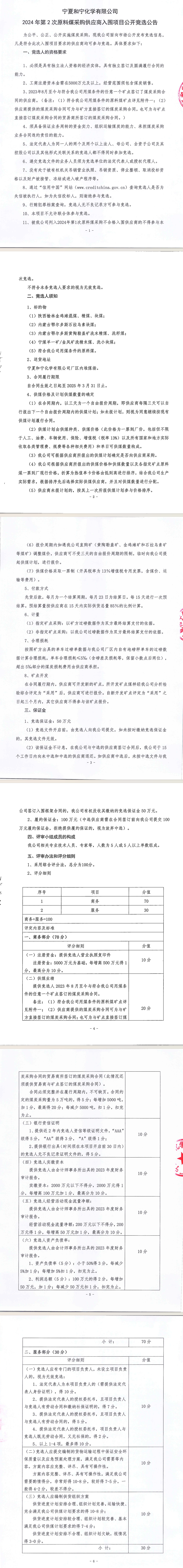 寧夏和寧化學有限公司2024年第2次原料煤采購供應商入圍項目公開競選公告(附件) [全文]