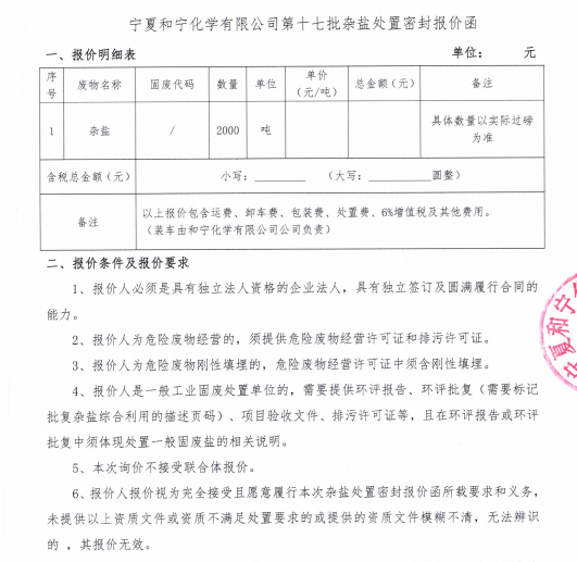 寧夏和寧化學(xué)有限公司第十七批雜鹽處置密封報(bào)價(jià)函.pdf [全文]