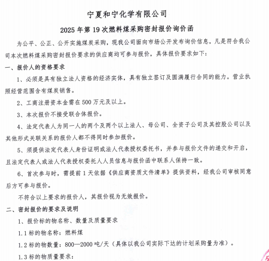 寧夏和寧化學(xué)有限公司2025年第19次燃料煤采購(gòu)密封報(bào)價(jià)詢價(jià)函.pdf [全文]