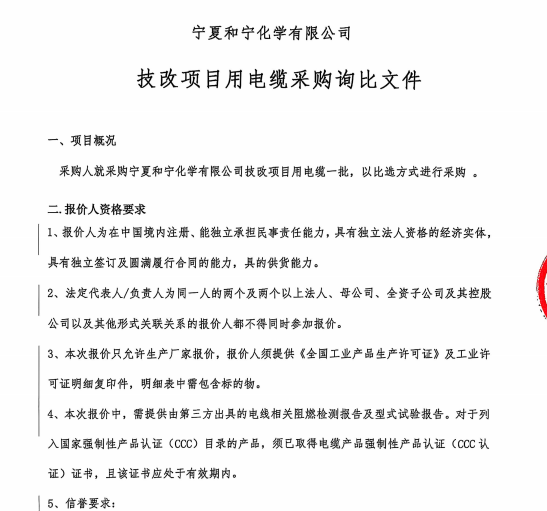 寧夏和寧化學有限公司技改項目用電纜采購詢比價文件.pdf [全文]