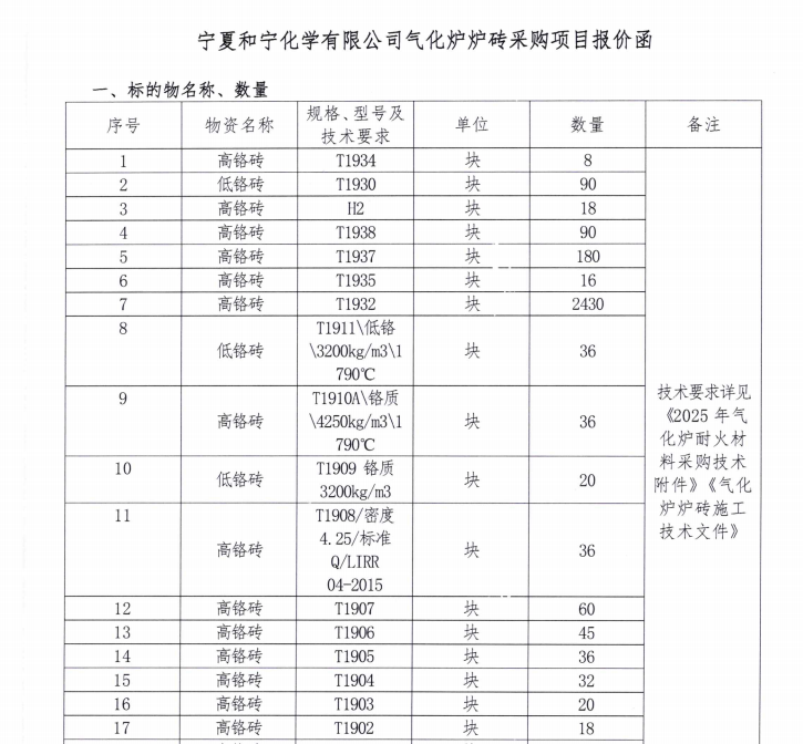 寧夏和寧化學有限公司氣化爐爐磚采購項目報價函.pdf [全文]