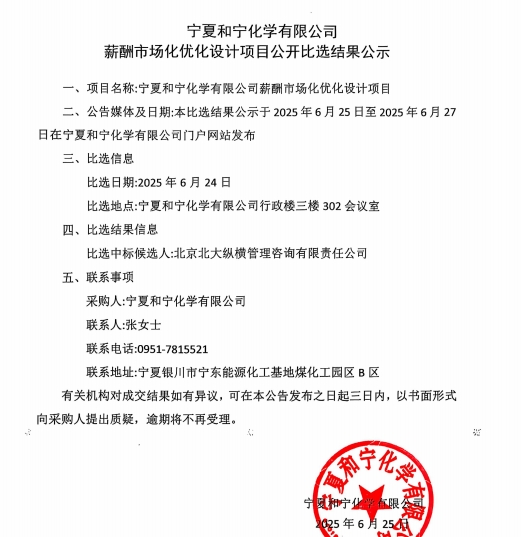 寧夏和寧化學有限公司薪酬市場化優化設計項目公開比選結果公示.pdf [全文]
