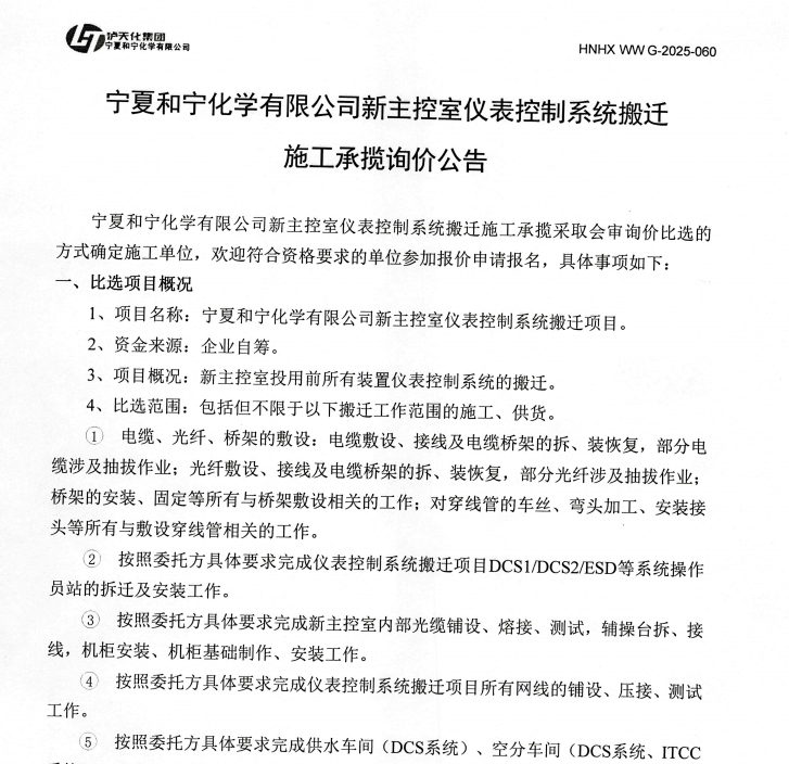 寧夏和寧化學(xué)有限公司新主控室儀表控制系統(tǒng)搬遷施工承攬?jiān)儍r公告.pdf [全文]