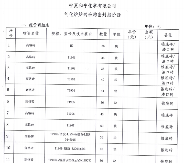 寧夏和寧化學(xué)有限公司氣化爐爐磚采購密封報(bào)價(jià)函.pdf [全文]