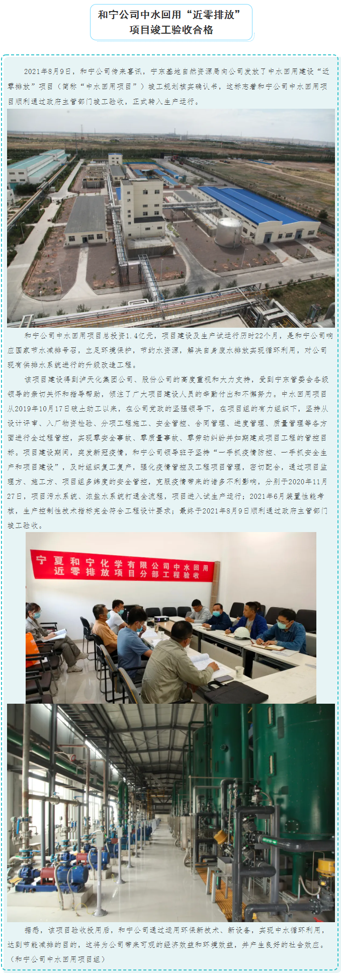和寧公司中水回用“近零排放”項目竣工驗收合格