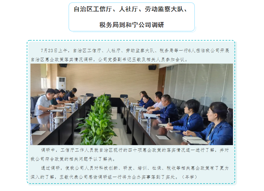 自治區工信廳、人社廳、勞動監察大隊、稅務局到和寧公司調研