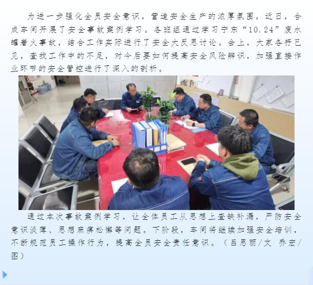 合成車間開展事故案例學習
