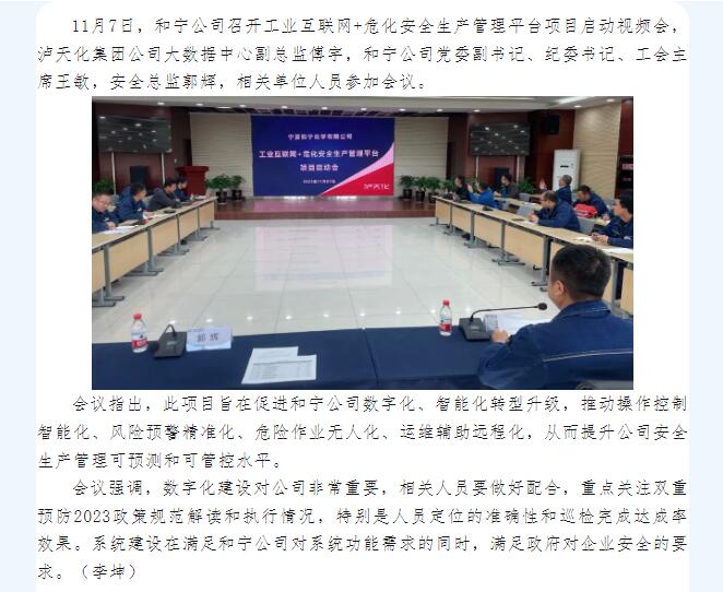 和寧公司召開工業(yè)互聯(lián)網(wǎng)+危化安全生產(chǎn)管理平臺項目啟動會