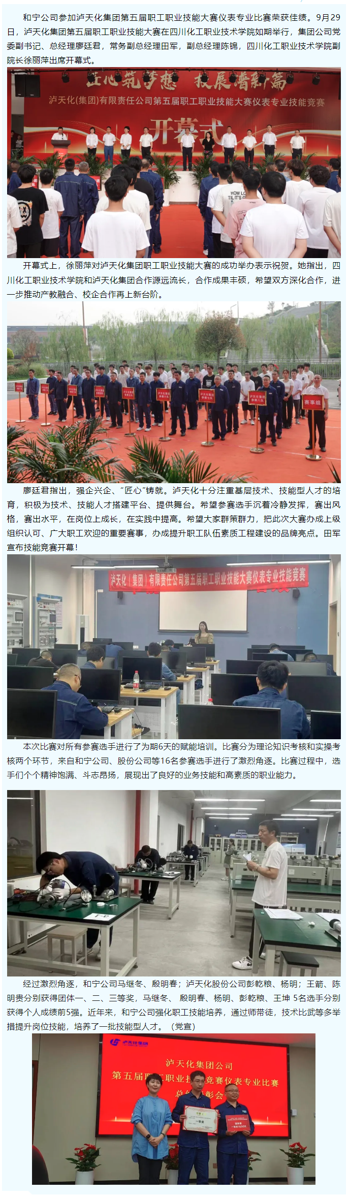 和寧公司參加瀘天化集團第五屆職工職業(yè)技能大賽榮獲佳績