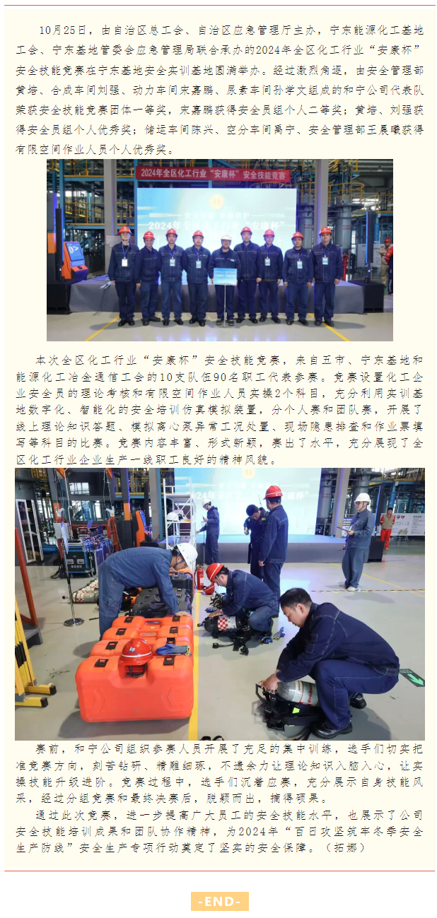 和寧公司在2024年全區(qū)化工行業(yè)“安康杯”安全技能競(jìng)賽斬獲佳績(jī)