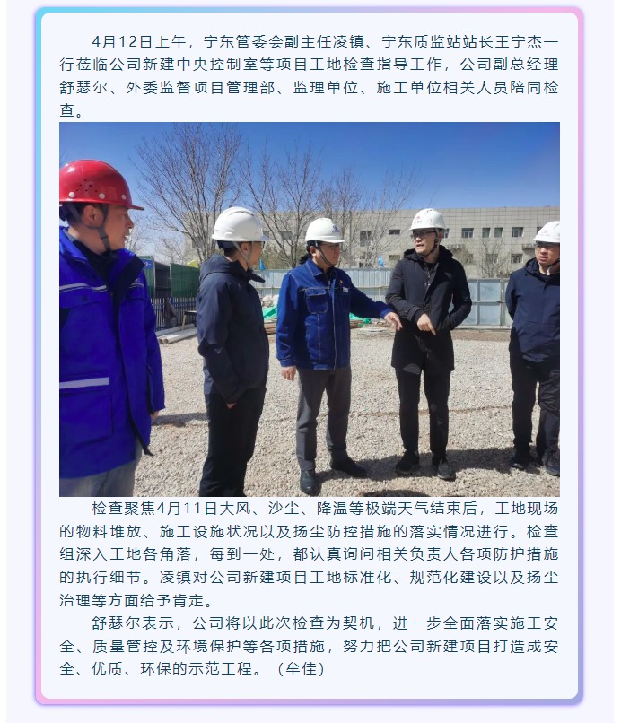 寧東管委會領導蒞臨公司新建項目工地檢查指導工作