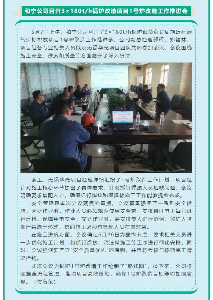 和寧公司召開3x180t/h鍋爐改造項目1號爐改造工作推進會