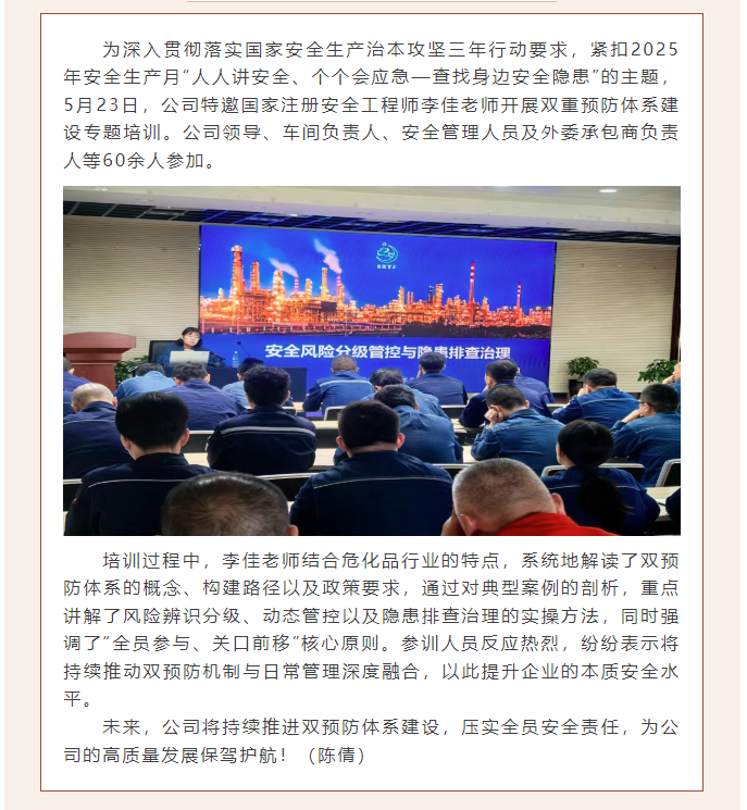 公司開展雙重預(yù)防體系建設(shè)專題培訓(xùn)