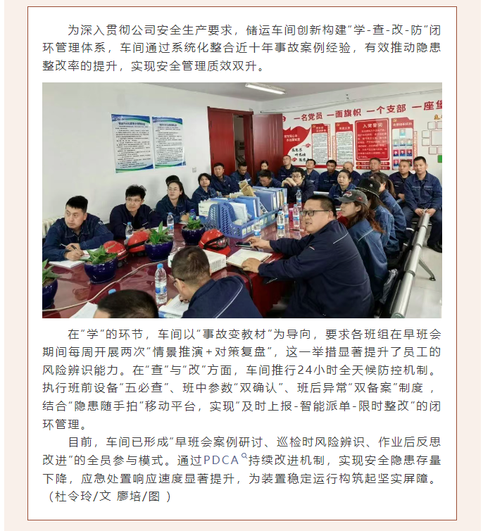 儲運車間構建“學查改防”閉環體系 筑牢安全生產防線
