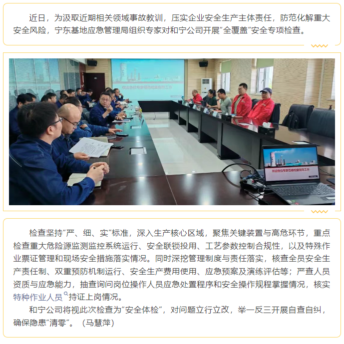 寧東應(yīng)急管理局對公司開展“全覆蓋”安全專項檢查
