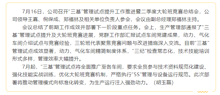 公司全面推進“三基”管理提升 大輪班競賽賦能生產提質增效