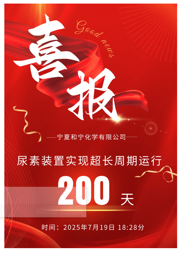 喜報!和寧公司尿素裝置完成200天超長周期運行