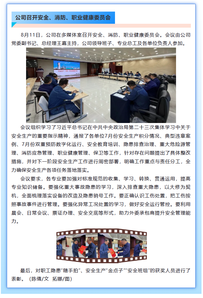 公司召開安全、消防、職業健康委員會