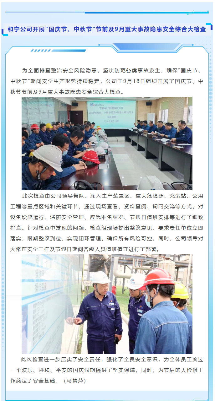 和寧公司開展“國慶節、中秋節”節前及9月重大事故隱患安全綜合大檢查