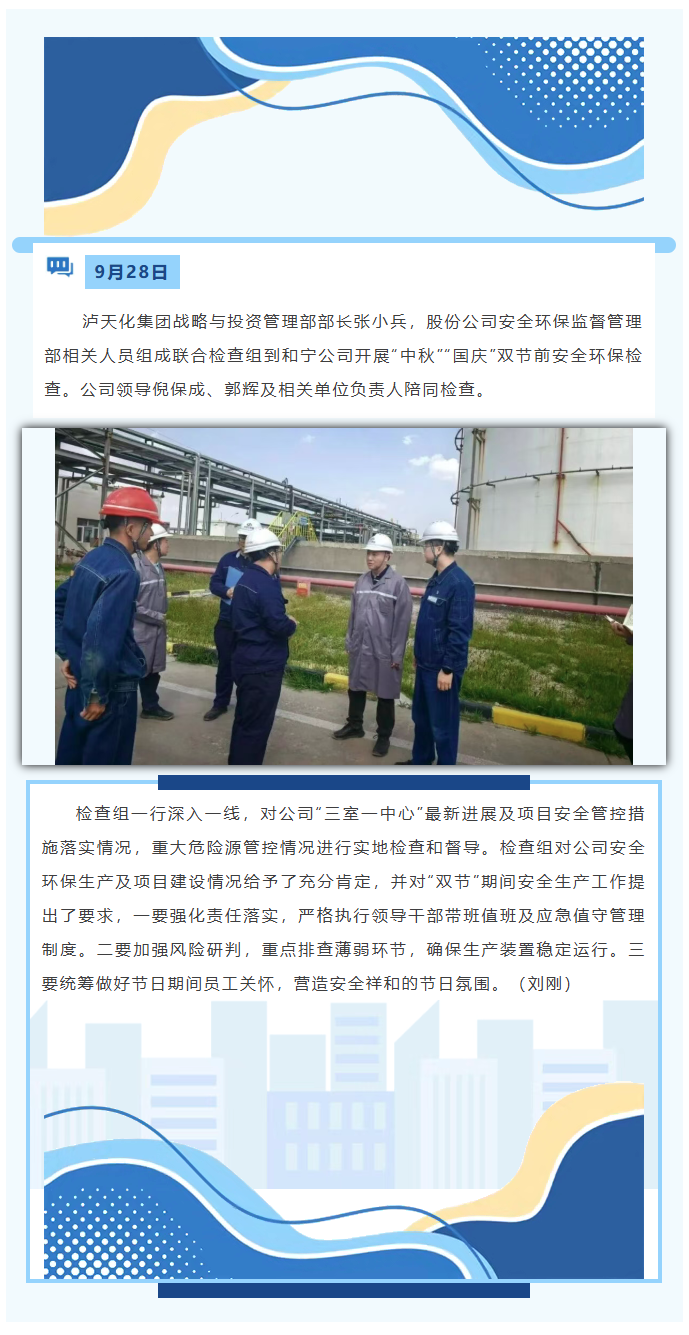 瀘天化聯合檢查組到和寧公司開展雙節前安全環保檢查