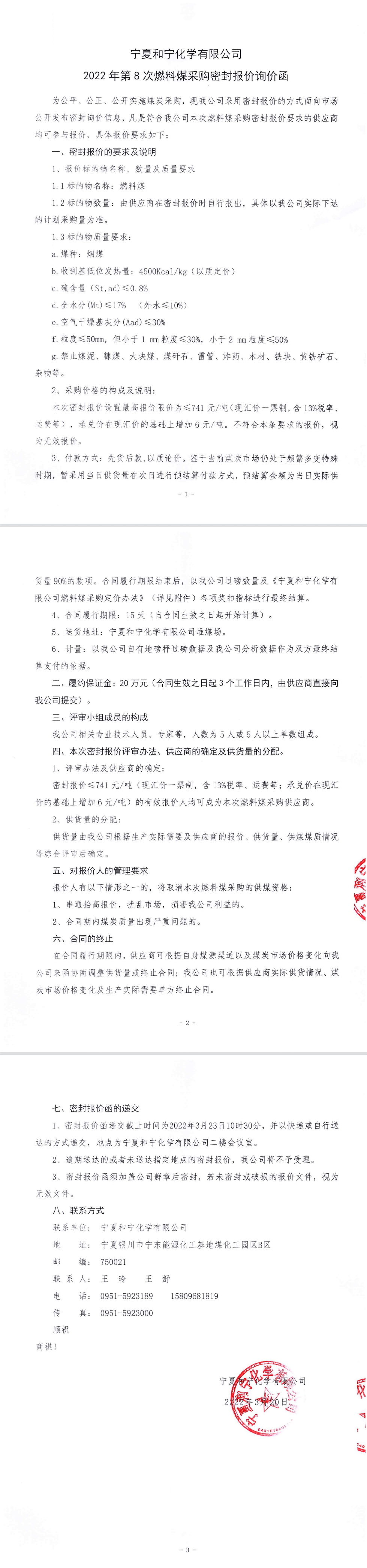 寧夏和寧化學(xué)有限公司2022年第8次燃料煤采購(gòu)密封報(bào)價(jià)詢價(jià)函(1)