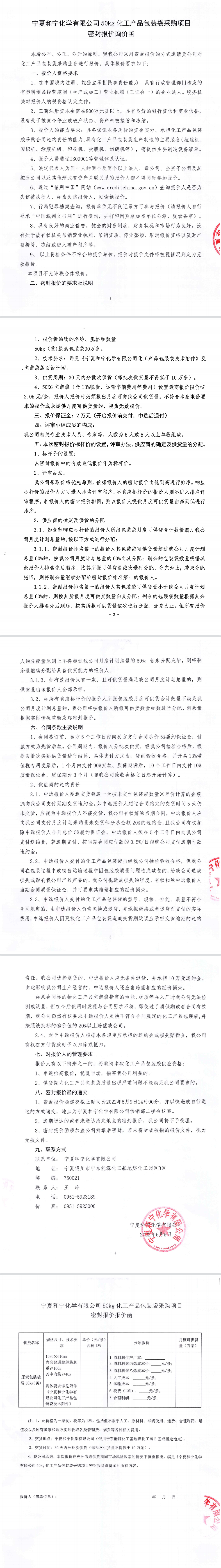 寧夏和寧化學有限公司50kg化工產品包裝袋采購項目密封報價詢價函