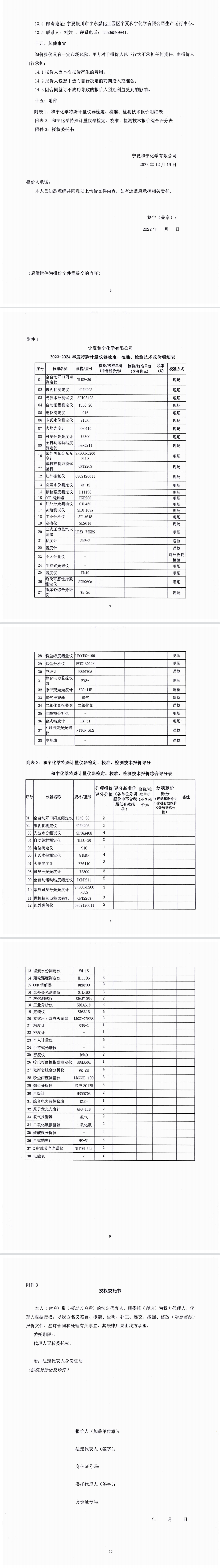 2023-2024年寧夏和寧化學特殊計量儀器檢定、校準、檢測技術服務承攬業務密封報價詢價函(1)