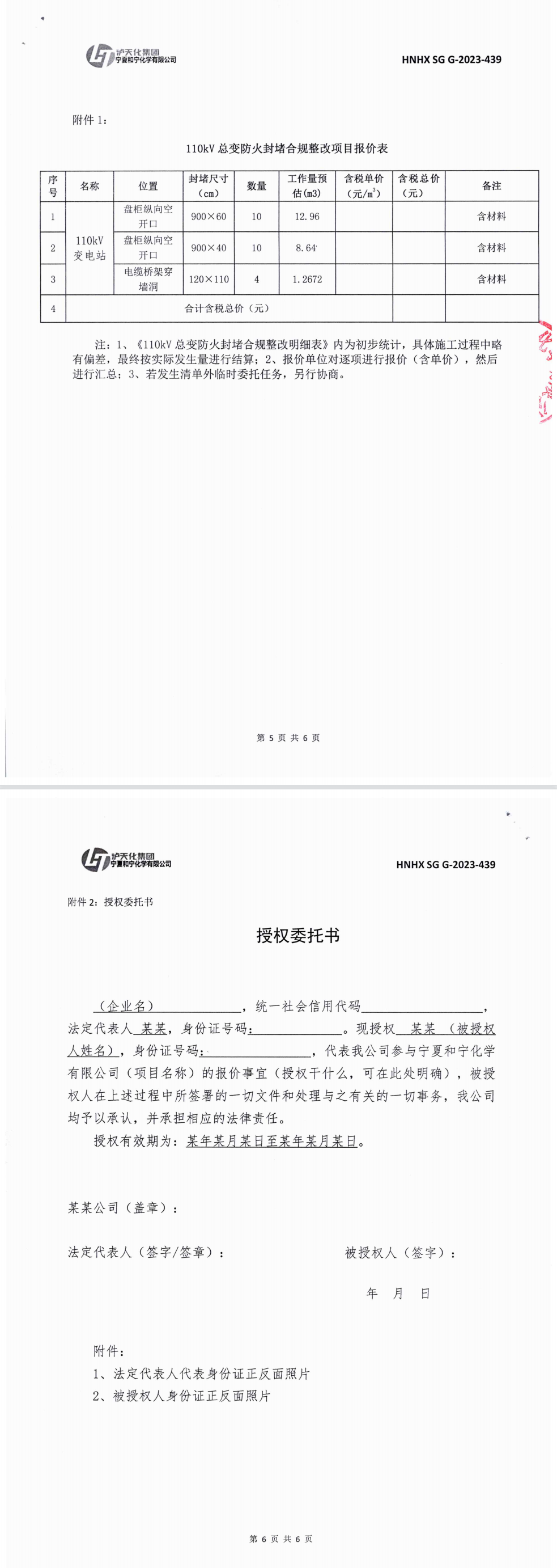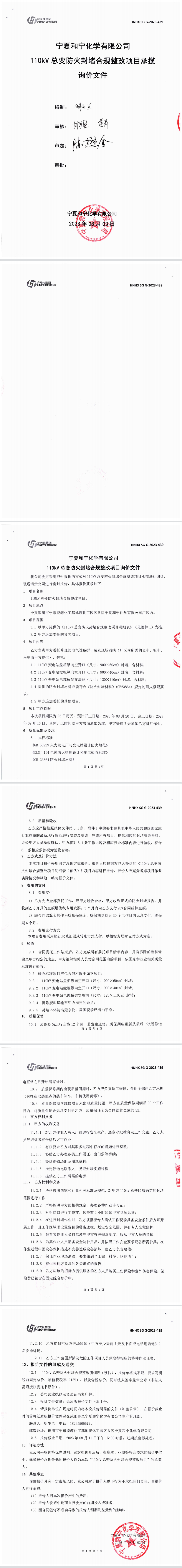 110KV總變防火封堵合規整改項目承攬詢價文件