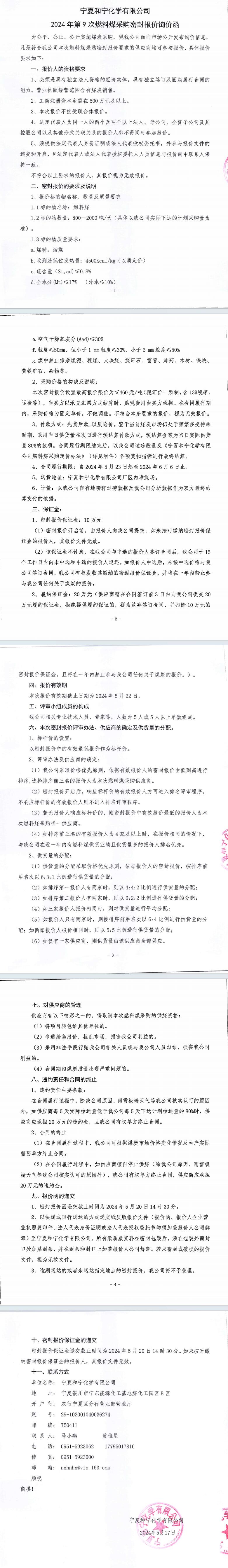 寧夏和寧化學有限公司2024年第9次燃料煤采購密封報價詢價函.pdf