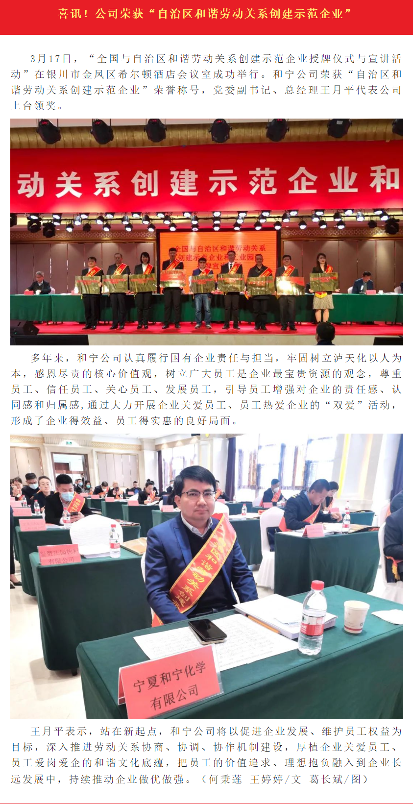 喜訊!公司榮獲“自治區和諧勞動關系創建示范企業”