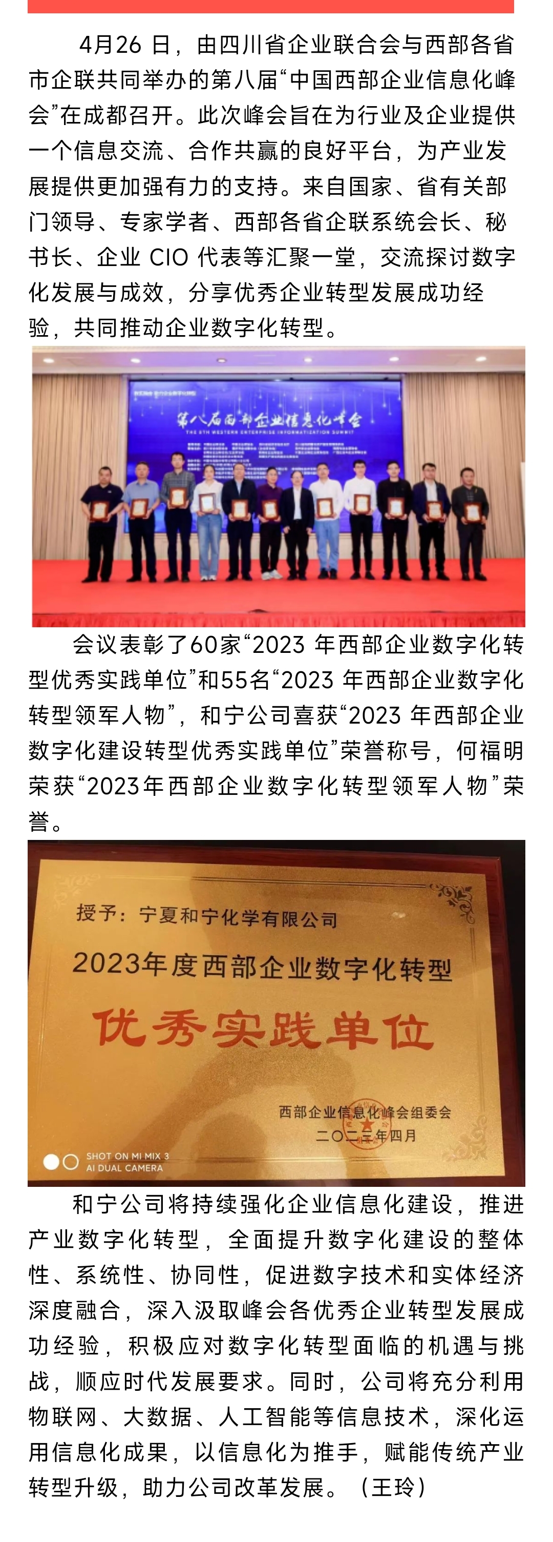 【喜訊】和寧公司喜獲西部企業數字化轉型優秀實踐單位和領軍人物殊榮