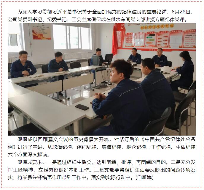供水車間黨支部對口領(lǐng)導(dǎo)講紀律黨課
