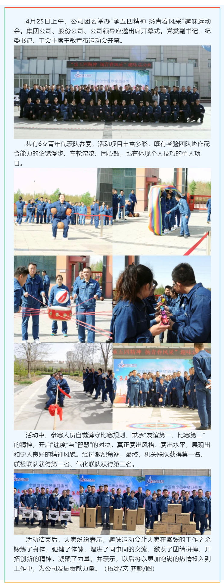 公司團委舉辦“承五四精神 揚青春風采”趣味運動會