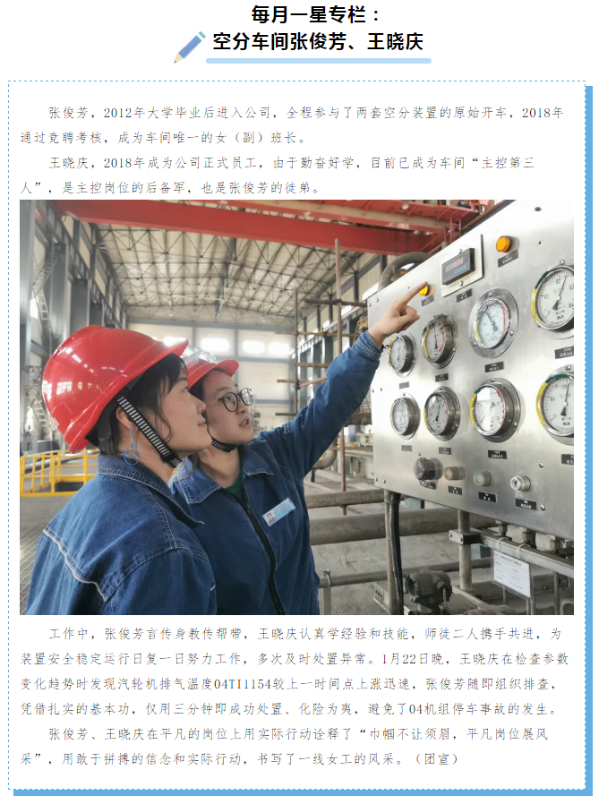 每月一星專欄:空分車間張俊芳、王曉慶